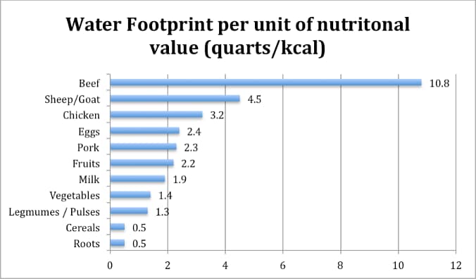 Agriculture accounts for 92% of humanity’s water footprint, with animal agriculture taking a disproportionally large share, particularly beef. Water scarcity is an increasing problem that can be solved by restricting or eliminating animal agriculture.